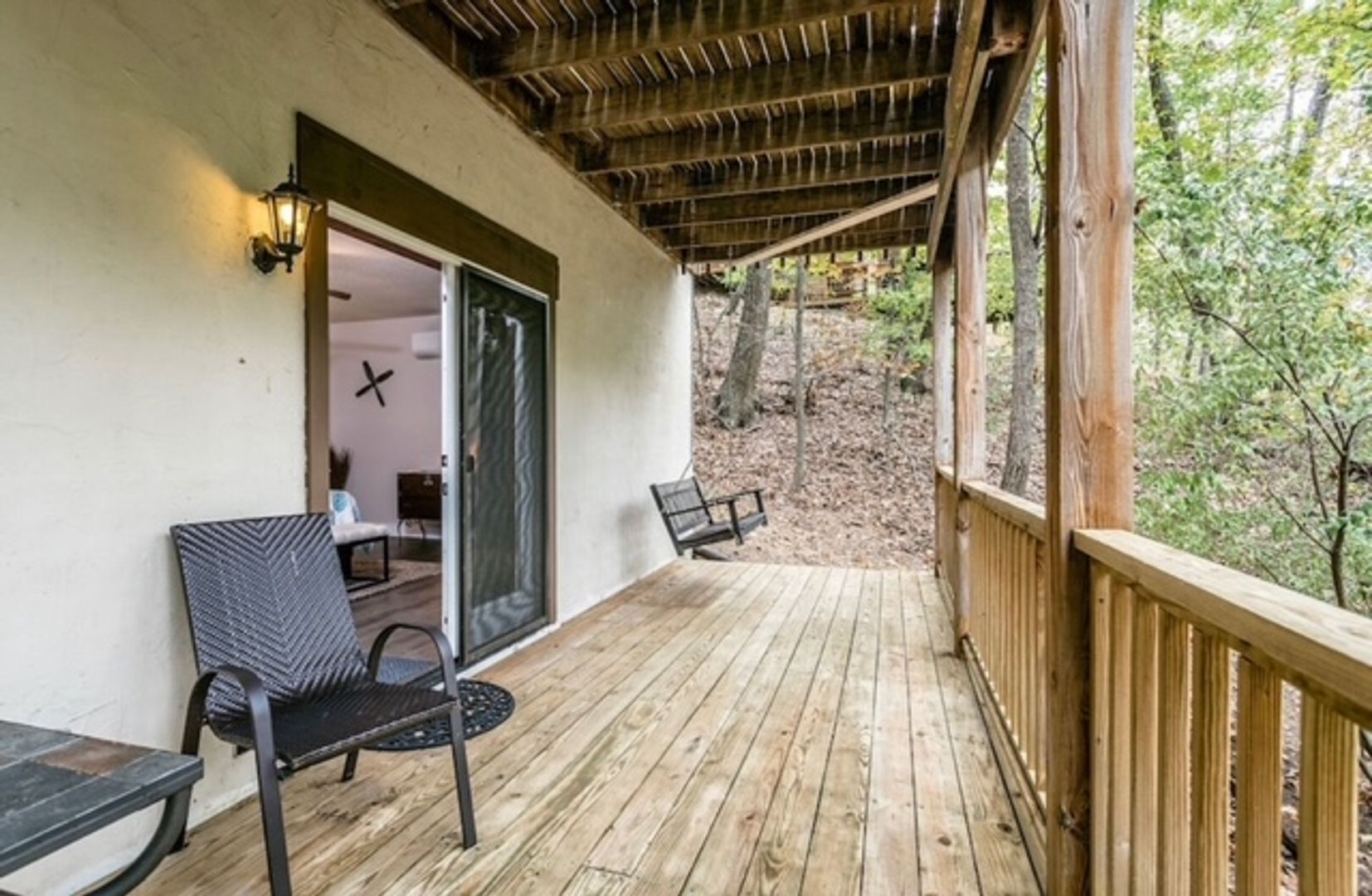 Discover Cabin Casper—your serene retreat tucked away on a private, wooded lot in Massanutten. This property offers a functional layout with a welcoming living area featuring an electric fireplace and an open flow into the kitchen. The kitchen includes ample storage and seating space, while the upper deck provides additional room to relax and enjoy the wooded surroundings. High-speed internet is available, and a washer and dryer (new in 2025) are located on the lower level for added convenience. An office space or additional living space is available through one of the bedrooms.