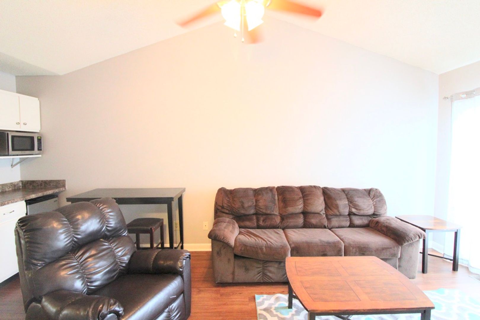 We have 3 bedrooms left in this 4 bedroom 2 bath townhome. This is a townhome set up as two different apartments separated by floor. Each floor has a balcony, living room, 2 beds, 1 bath, and a mini kitchen. The larger kitchen and laundry are shared between the two floors.