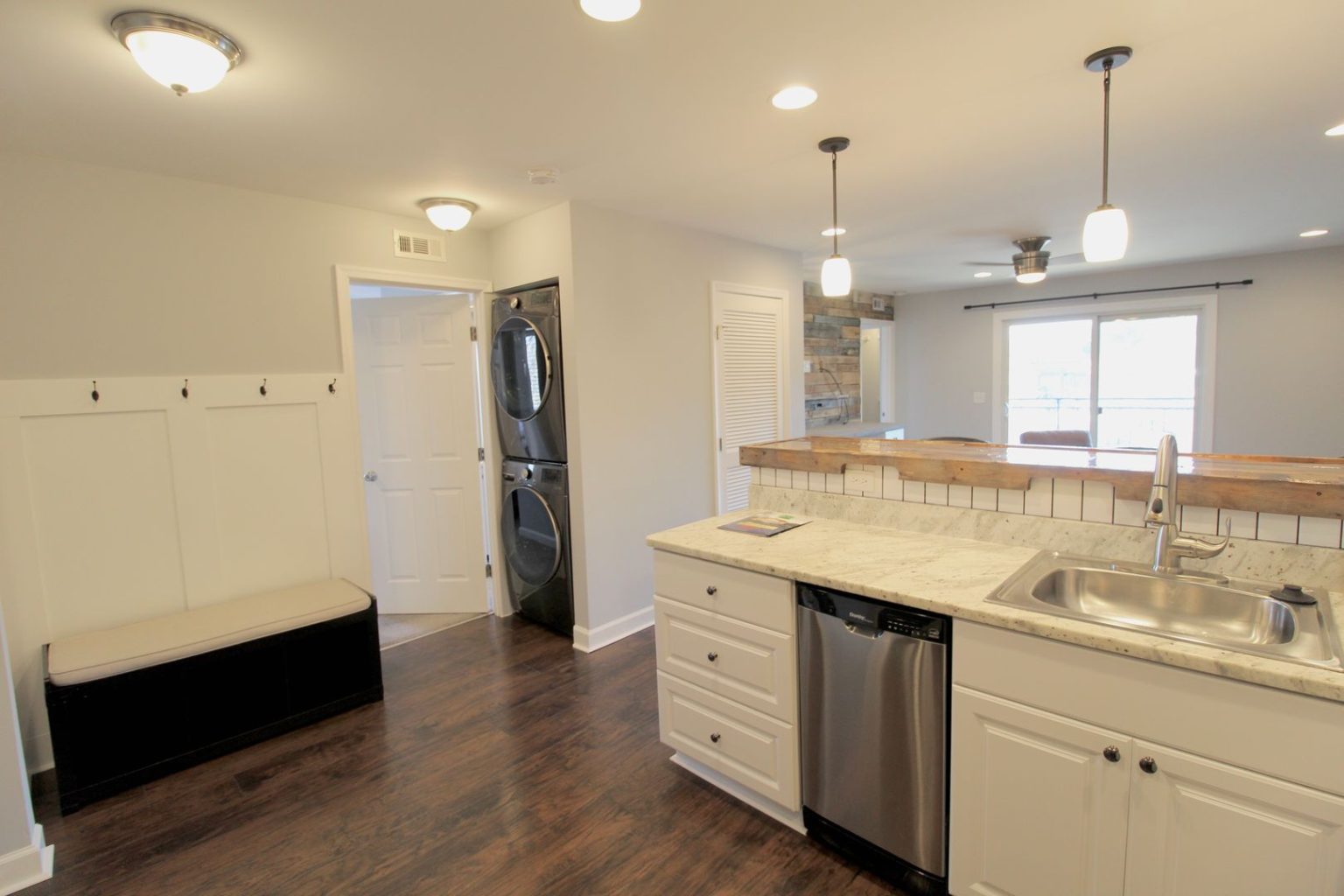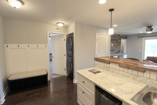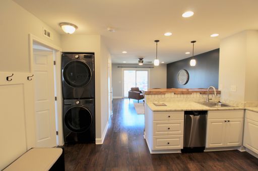 Large two bedroom two bath condo at popular Hunters Ridge. This condo offers a different vibe with ship lap, bar area, luxury vinyl plank flooring, new white kitchen cabinets with granite countertops and stainless steel appliances. This condo has been remodeled and each bedroom comes with a walk in closet. Pets conditional.