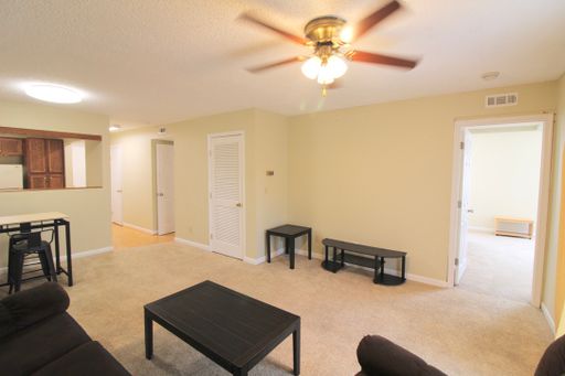 Hunters Ridge is located right by JMU off Port Republic Road. Each condo offers an open living area that includes a kitchen, dining, and living room, and has a washer/dryer and balcony/patio. This condo has two very large bedrooms, each with its own bath.