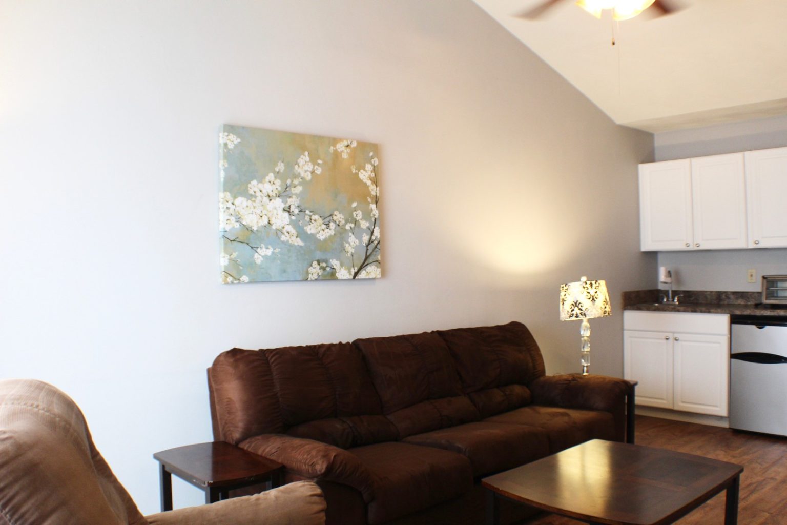 – Newer wood laminate-style flooring throughout the common area.