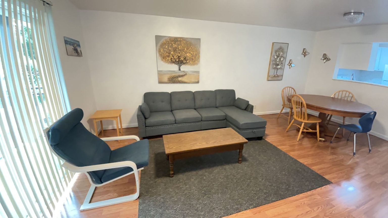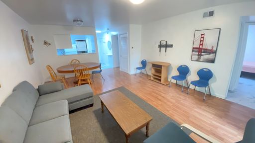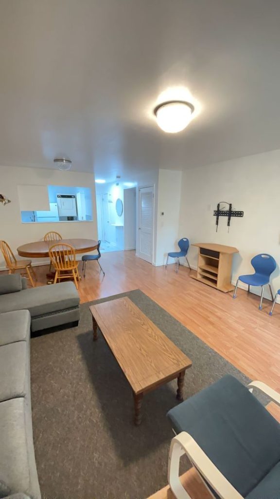 ✅ Open living area with kitchen, dining, and living room