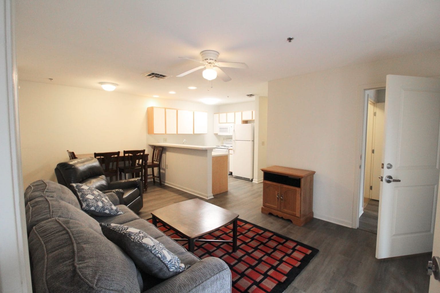 Campus View is located right by JMU off of Reservoir St. We offer four-bedroom condos each with its own bathroom and walk-in closet. Each Condo has an open-concept living area and a private balcony/patio. Campus View comes with a Hammock area, Pool, Grill and patio area, 24/7 gym, volleyball court, basketball court, and a clubhouse. Our condos offer a variety of pricing depending on the amount of remodeling.