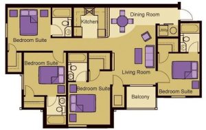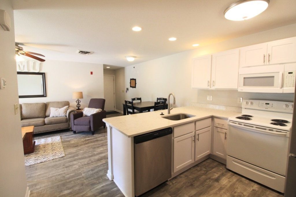All of our Campus View Condos are privately owned and each one is remodeled and decorated differently. All of our condos have 4 bedrooms and 4 baths. Each bedroom comes with its own private bathroom and walk-in closet.